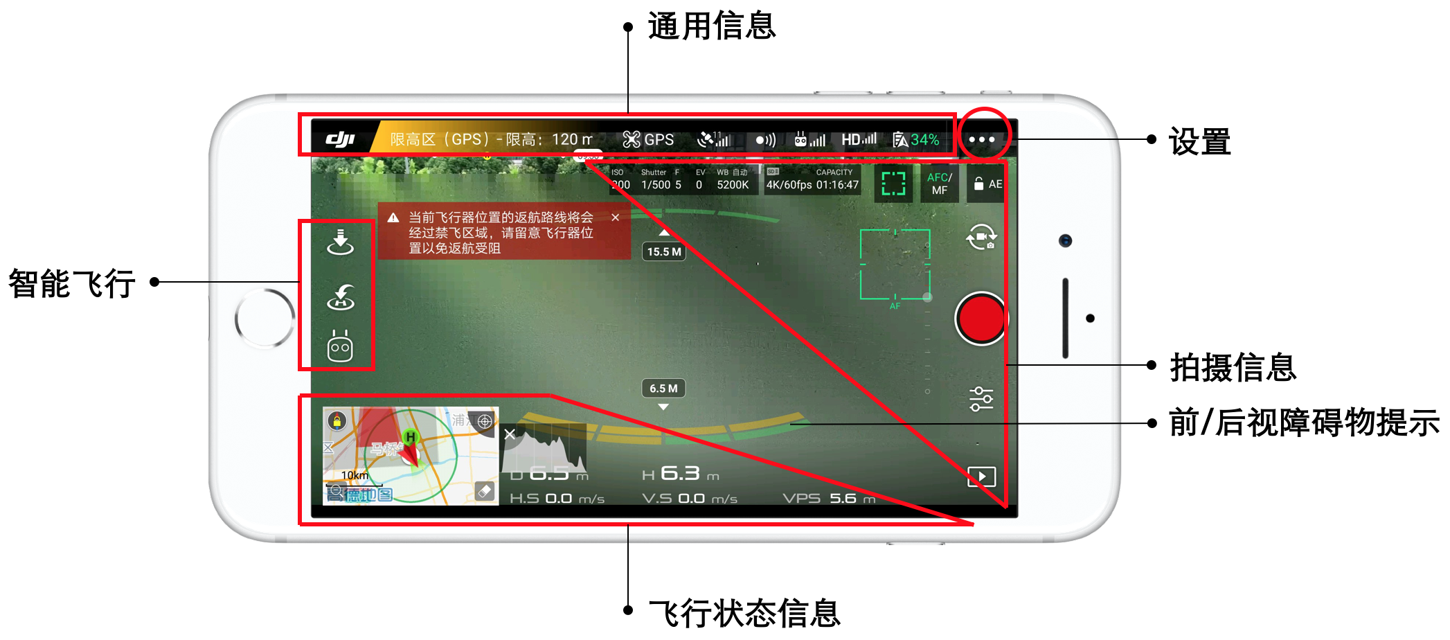 - 实际使用时App可配合Mavic Pro实时查看摄像头画面以及调节飞行器摄像头的参数;